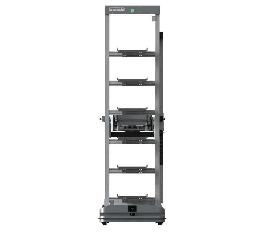 • Flexible grippers. With fork gripper and back tray customization options, our robot seamlessly accommodates different sizes of material bins. Additionally, it supports flexible customization of 3-6 layers of back trays.